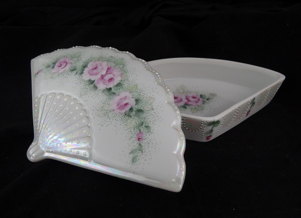 8x1.5"D heirloom box pink roses, scrolling, enameling, mother of pearl around bottom pointillism, enamel and mother of pearl on the lid